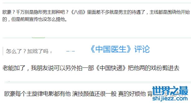 但欧豪在其他大片里的表现,已经让人对他有了PTSD(创后应激障碍)。以他参演的《八佰》《中国医生》为例,加戏、演技拉垮是大家对他最多的评价。