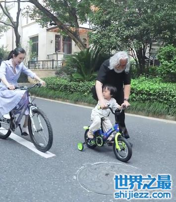 张纪中和妻子还带着孩子在马路上学习如何骑自行车,小孩子坐在自行车上学得嗷嗷大哭,张纪中弯腰手把手教孩子学自行车,杜星霖则骑着自行车在身后温柔的看着丈夫与孩子。