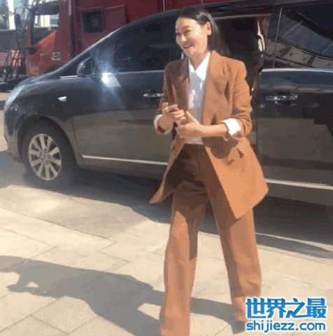 尽管穿着一身“霸道总裁”风格的服装,惠英红的性格却非常亲切温和,下车走进演播厅一路上都是笑容满面,完全没有搭影后大咖的架子。