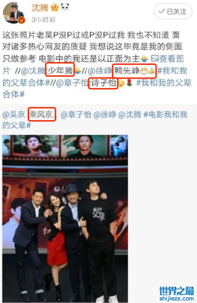 照片发布后,章子怡、徐峥和沈腾纷纷转发,就连文章格式都一样,可谓是非常有默契。不仅如此,沈腾面对网友的P图质疑还表示自己看上去变瘦了是因为照得侧面的缘故,电影中的自己还是正面出演的,话语非常幽默风趣。