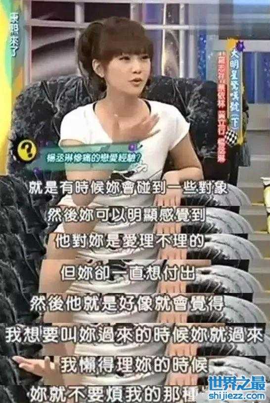 杨丞琳坦言这任男友不是她最爱的,但却是伤她最深的,甚至因此害怕再次受到伤害,留下了阴影。