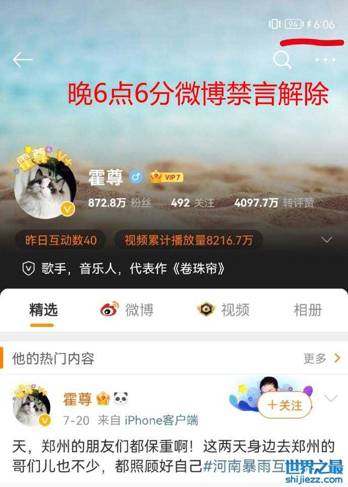 9月28日晚6点6分,有网友发现被禁言一个月的霍尊微博账号已解封,不少网友在其账号下喊话让其回应一下,但遭到他的沉默回应。