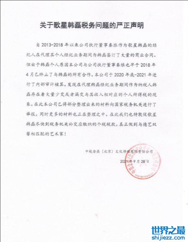 前经纪人曝韩磊偷漏税,韩磊方回应:偷税漏税的是前经纪人,他是第一责任人 ...