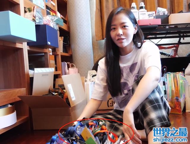 张靓颖跟大家分享了之前买的游戏机加湿器等,在架子上还翻到了好多之前买的还没拆的墨镜,值得注意的是,张靓颖的墨镜已经有满满一筐,假睫毛也是,一数就数出来一大筐的假睫毛。