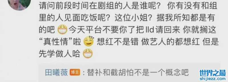 然而,事情似乎有反转。当被网友质疑前阵子和剧组的人吃饭,田曦薇则表示自己只是替补,不是截胡。