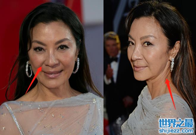 而在国外媒体的无修镜头下,杨紫琼虽然妆容精致,但在生图中还是能看出些许老态,脖颈皮肤已经有松弛迹象,在灯光照射下,面部稍显油光。