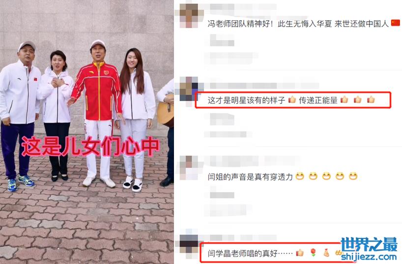 观看了冯巩这一表演的网友纷纷不吝啬自己的赞美,在评论区像冯巩老师一样表达了对伟大祖国的美好祝福,直言冯巩团队精神好,一直在传递正能量,同时还不忘夸赞闫学晶歌声很好听。