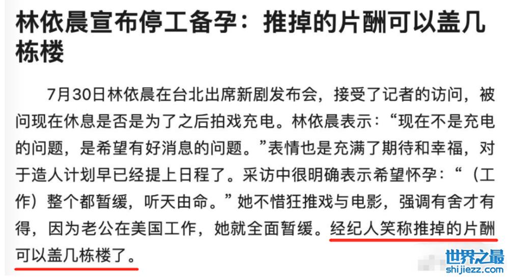 据统计,林依晨已经三年多没拍戏了,事业也处于半停摆状态。经纪人也曾笑称,推掉的戏约片酬足够盖几栋楼了~