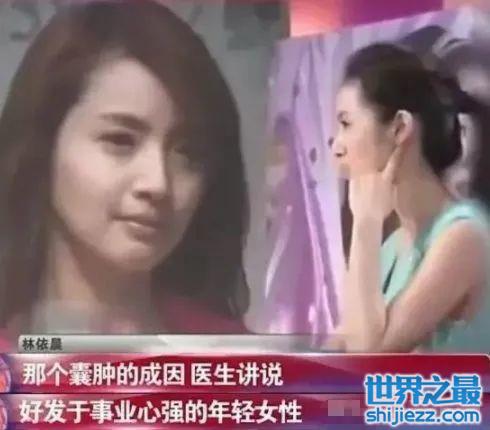 遗憾的是,同年6月,林依晨就被验出脑下垂体蝶鞍部出现约2厘米长的囊肿,需要动手术,这种病常出现在事业心强的年轻女性身上。
