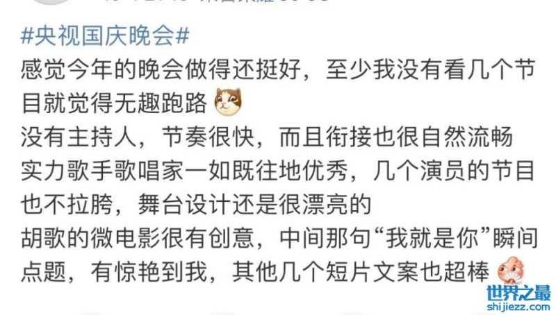 因为祖国的繁荣昌盛,才能让我们有幸欣赏到这么完美的晚会,小8和全国人民一样都心存感恩,感谢祖国母亲,祖国母亲生日快乐!