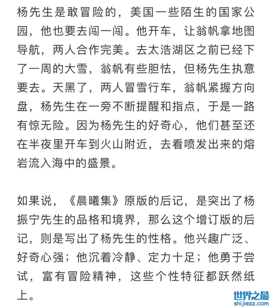 这就是他们二人甜蜜,惹人羡慕的感情,就像很多夫妻一样,会调侃对方,会关心对方,一起去看美景,享受这人世间的美好,再次祝福杨振宁先生百岁生日快乐!