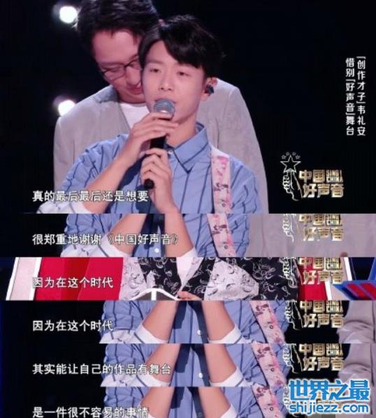 在发表离别感言的时候,韦礼安再三感谢《中国好声音》,因为在这个时代,能够让自己的作品有舞台,是一件非常不容易的事情。