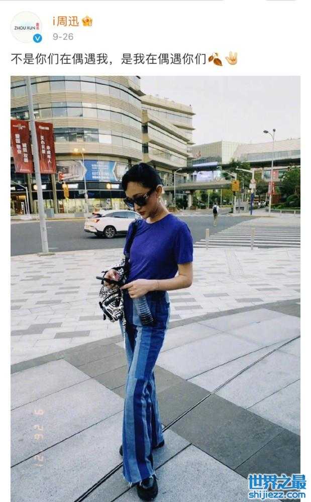 最近一段时间,周迅和井柏然等明星都在录制新节目,所以有大批的粉丝,幸运在街头偶遇他们。前几天周迅还现身一家饮品店,即便是在室内她也低调地戴着墨镜。周迅的工作室还晒出周迅的街头生图,她头身的比例很好,穿一件蓝色短上衣,修身牛仔裤显露长腿,站在街头十分显眼。