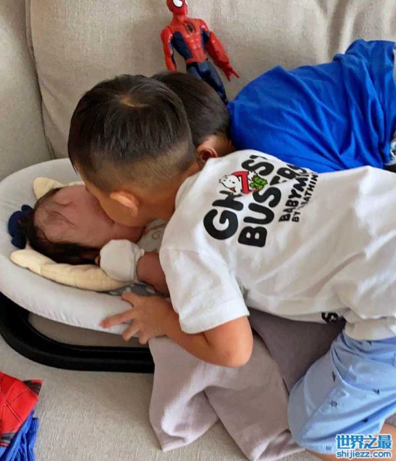 从2017年生下大儿子李奕霆后,胡杏儿又接连生下两个儿子,一家五口的日常满满的幸福。不久前李承德晒出三兄弟见面的照片,说大儿子和弟弟俩月没见面,但三兄弟的感情依旧很好。图片中的两个哥哥俯下身子和弟弟说话,接着还一起给小弟来了个亲亲。