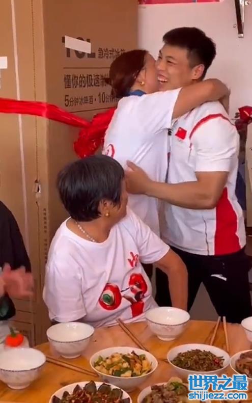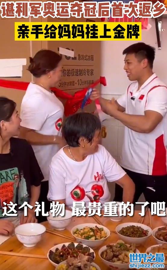 面对含辛茹苦抚养自己长大成才的妈妈,谌利军十分暖心地送上了自己的冠军金牌,母子两人相拥的画面,十分感人。