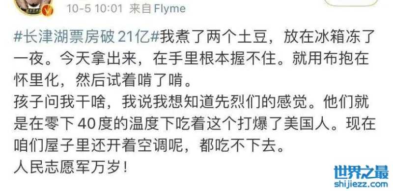 近日,就有一位女孩看完了电影后回家自己制作冻土豆,想体验一下英雄们当时的艰苦条件,没想到根本就咬不动土豆,女孩表示吃了第一口就觉得很心酸,特别想哭,觉得现在的美好生活都是战士们奋斗来的。