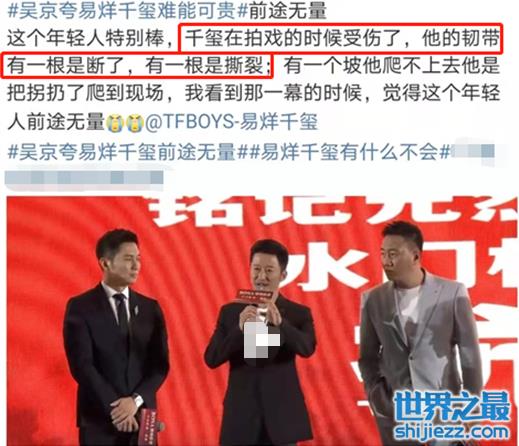 一次动作戏拍摄中,易烊千玺腿部一根韧带断裂一根撕裂,为了不耽误剧组进度他还是坚持拍摄。