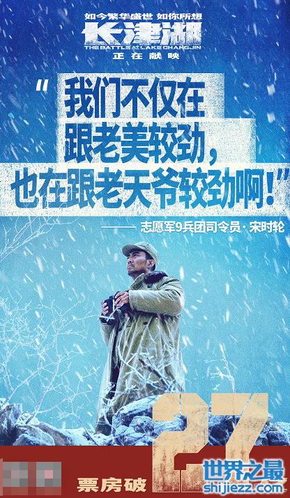 也难怪观众会对这部影片期待值拉满,从预售破1亿票房到现在开播仅三天就突破10亿票房,当下破27亿,《长津湖》成为一部口碑和票房全线开花的良心之作,志愿军们那些令人热泪盈眶的故事从此不再被孤零零掩埋在异乡的冰雪里。