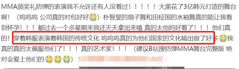 比如她们会跟着自己的偶像说扇子舞是传统韩国艺术,赞扬自己的爱豆替韩国宣传了文化。