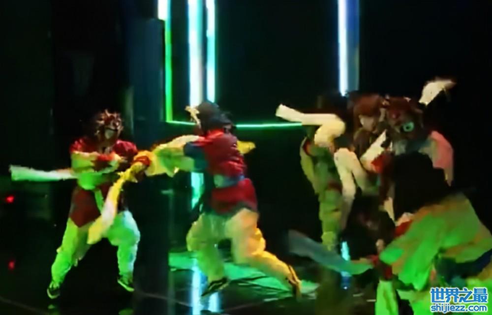 像这样的例子简直不要太多,比如还有拿着中国折扇跳舞的,上面写的都是汉字。