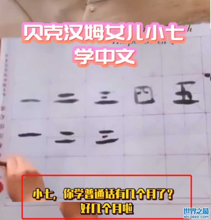 维多利亚还在视频中透露小七已经学习普通话好几个月了,女儿小七也表示学习中文很有意思,自己很喜欢。