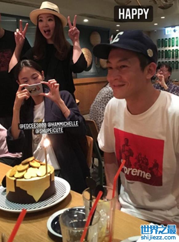 除此之外,秦舒培和友人还贴心地为陈冠希准备了蛋糕庆祝,蛋糕上堆满糖做的金币,友人们在一起开心的玩闹,而秦舒培则拿着手机对着陈冠希拍照,陈冠希脸上流露出既幸福又羞涩的笑容。