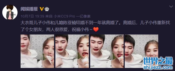 知情人曝大衣哥儿子已离婚,小伟又找了新女友,女方颜值不输陈亚男 ...