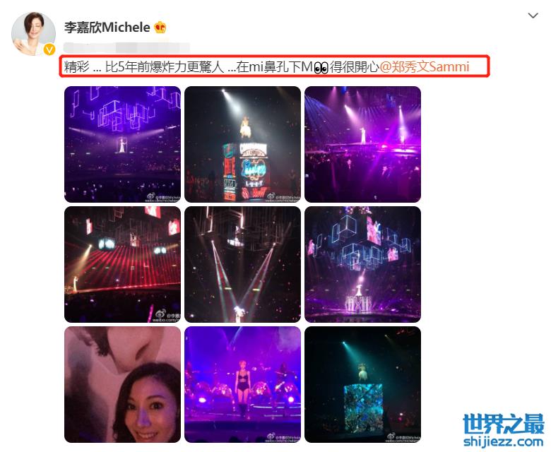 除此之外,李嘉欣还时常去观看好闺蜜郑秀文的演唱会,并在社交平台上发布演唱会后的观感,夸赞郑秀文的舞台一年比一年要厉害,将舞台上的郑秀文拍摄的也是十分的酷飒,霸气十足。