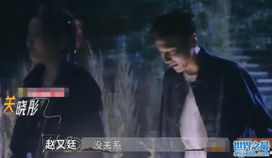赵又廷则表现地十分勇敢和淡定,他走在关晓彤身后保护着她,还一直安慰着关晓彤。赵又廷一直跟关晓彤说“没关系,我在,不怕。”就像是在哄女儿一样温柔,关晓彤也在赵又廷的安慰下平复好心情,跟随众人继续前进。