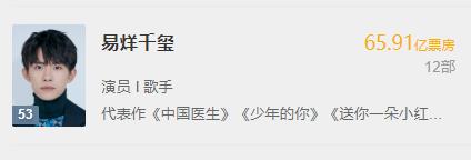 再比如易烊千玺,作为00后的新晋电影人,他的个人票房已经突破了65亿,打破了大家对他爱豆的定位,华丽转身成为了演员。再比如韩东君和朱亚文,个人票房同样突破了60亿,算是收获颇丰。