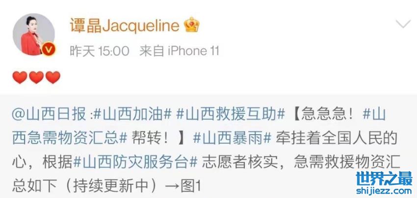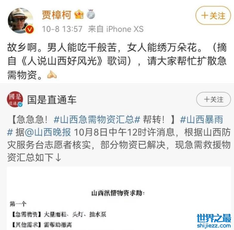 另外,山西籍导演贾樟柯、山西艺人高梓淇、谭晶、王子璇也纷纷为家乡加油,大家虽然身处外地,却心系家乡,风雨面前,爱比雨大,给粉丝们做了好榜样。