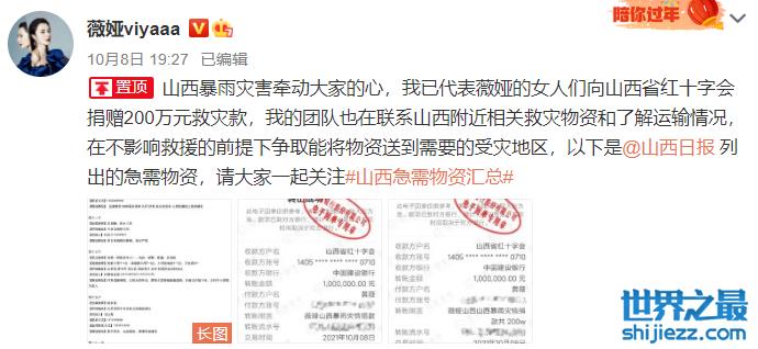 众星驰援山西:薇娅第一个捐款200万,山西籍艺人王子异贺刚捐款捐物 ...