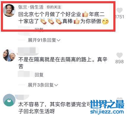 9月27日,汪小菲隔离时晒出一段视频,称他已经隔离六天的时间,算算时间,正好在10月6日隔离结束。张兰还特意到儿子的评论区回复说:“回北京七个月做了个好企业,年底二十家店了,真棒,为你骄傲”。