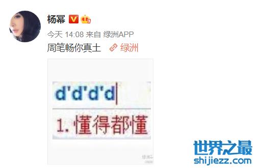 杨幂发文称:“周笔畅你真土”,配图是一张“懂得都懂”的表情包,直接公开回怼了周笔畅。而周笔畅面对杨幂的反击,显得十分轻松,留下了一句“毕竟我是你的歌迷”的评论。