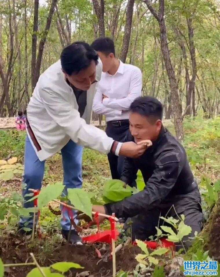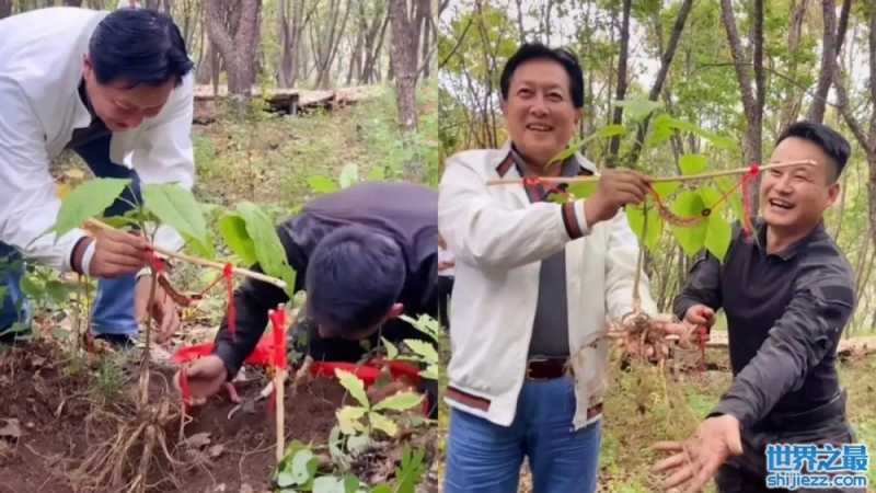 之后唐国强俯下身子,帮助工作人员挖人参,在众人的齐心协力之下,根系繁多的人参终于成功被挖出来。唐国强和工作人员,露出了开心的笑容。