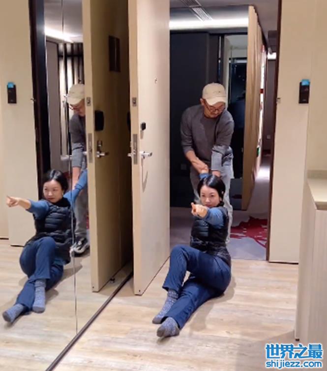 不一会儿,阿雅还叫来一名男子抓住她的手,而她固定着一个统一的姿势,被男子在房间内不断拖行,绕着整间屋子一圈又一圈,阿雅脸上的表情十分严肃认真,两相对比,反差极大,画面魔性又有趣。