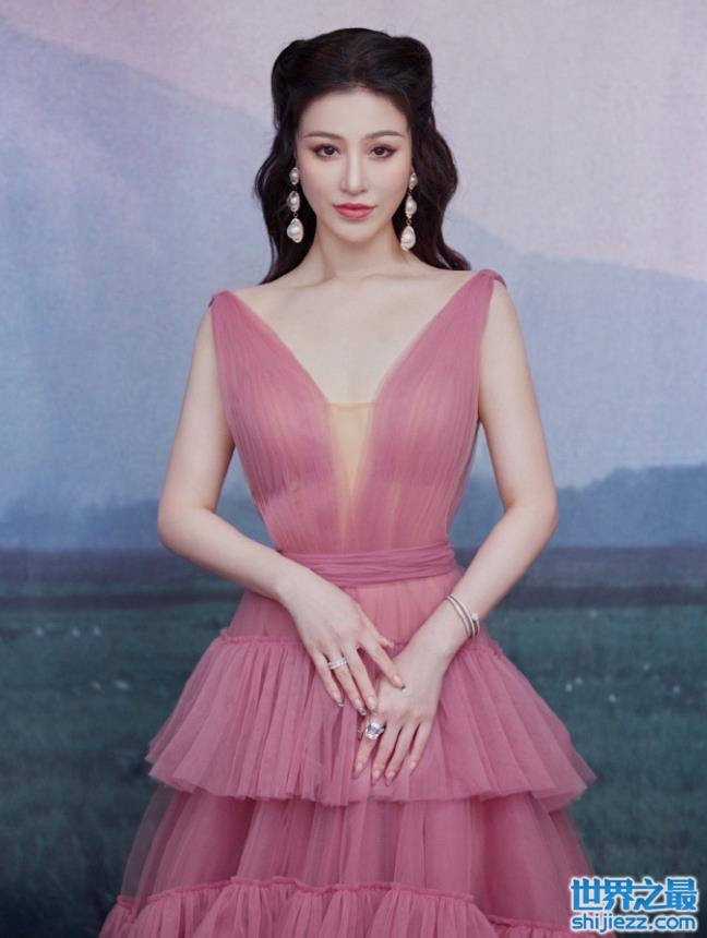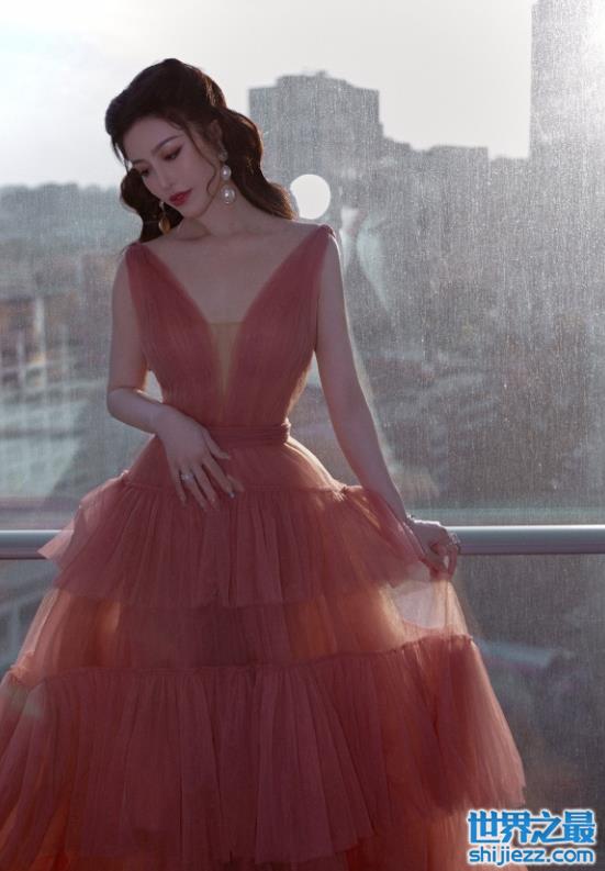 照片中葛天刘海高挽气质斐然,身穿深V无袖粉色纱裙,超大钻石耳坠配饰凸显其白皙皮肤,低胸领口设计秀出丰满事业线,一对精致锁骨扎眼手臂更是纤细修长,细腰盈盈一握,薄纱下姣好的身材曲线若隐若现,举止间风情万种。