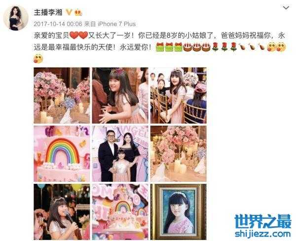 10月13日主播李湘在个人账号与老公王岳伦一起为宝贝女儿王诗龄庆生。