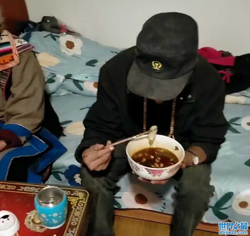 照片之中拉姆的父亲衰老了太多,她独自在养老院里吃着饺子,戴着帽子的他并没有抬头,感觉心情十分地低落。