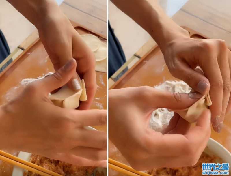 41岁董洁素颜在家包饺子!动作专业太利落,一双手白皙细嫩似少女 ...