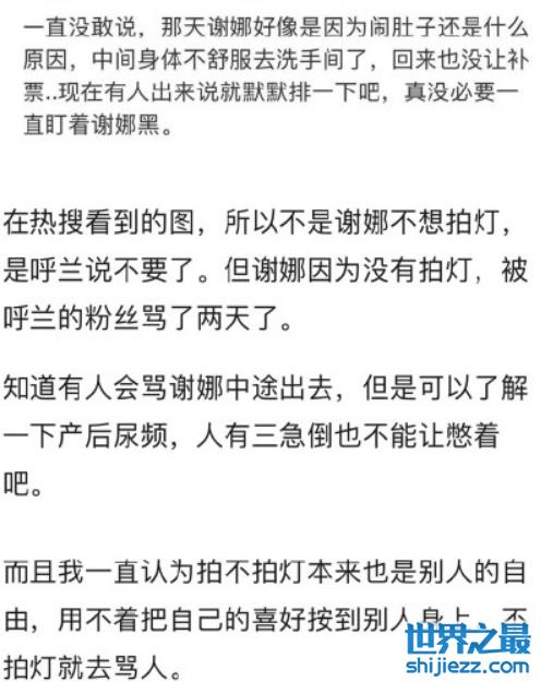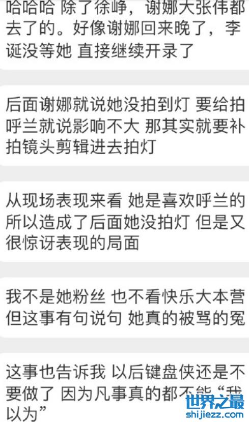 有现场粉丝替谢娜解释,称在呼兰表演的过程中,谢娜出去了不在场,李诞着急统计票数也没有等谢娜回来,谢娜回来之后想要补上这2票,呼兰说不用了,所以根本不怪谢娜。