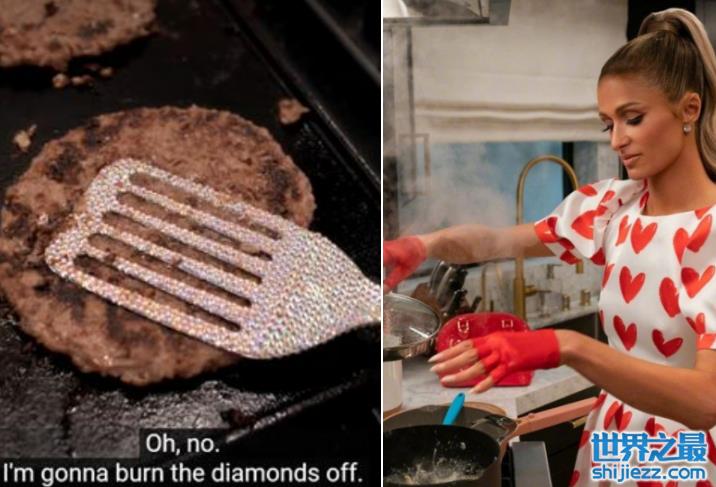 前阵子帕丽斯希尔顿还曾参与录制一档厨艺节目,在节目中,帕丽斯全程带着蕾丝手套做饭,连煎蛋的锅铲子上面都镶满了钻石,精致又华美,看起来十分不真实。
