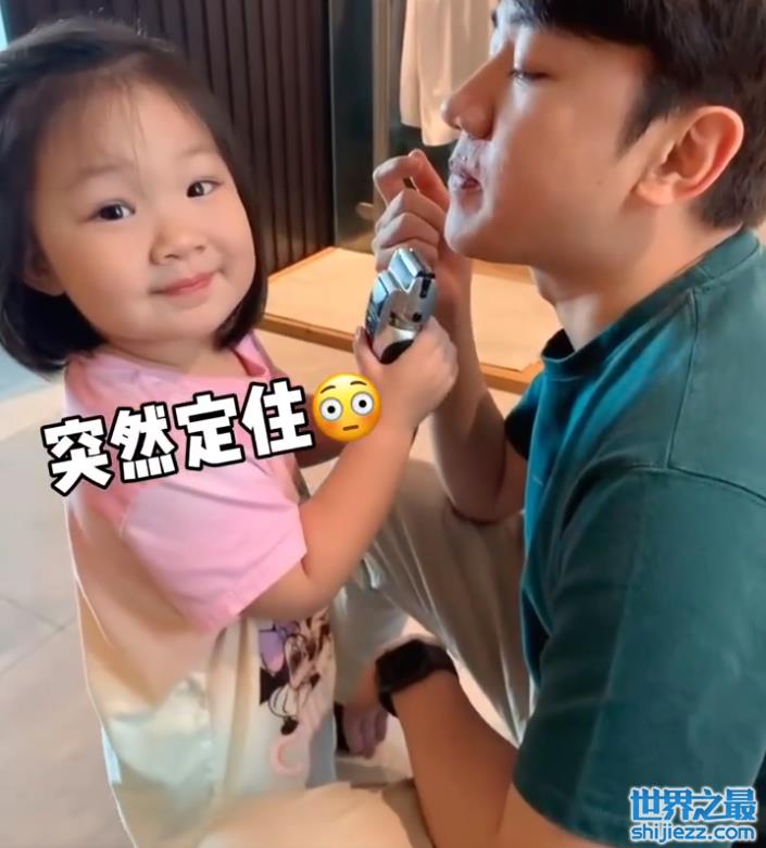 王祖蓝女儿给他剃胡子,拿剃须刀往爸爸嘴上怼,2岁Gabby脸颊肉嘟嘟 ...