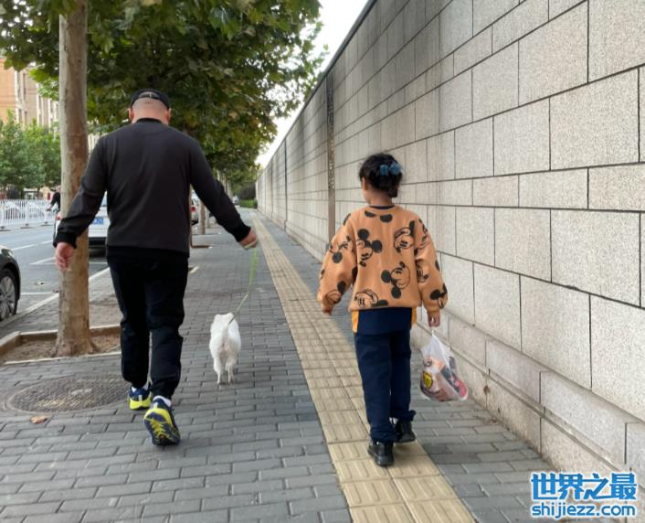 岳云鹏和小女儿走在街道上时,岳云鹏手上牵着一条白色的狗稍微走在前头,正在遛狗的他步伐跟随着小狗,姿势轻快,蹦蹦跳跳的,看起来十分的搞笑。而麓玥则跟在爸爸身后,她独自提着装满辣条的购物袋,小朋友对于辣条总是没有抵抗力。