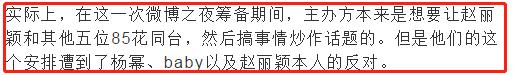 原因正是上图中微博之夜的活动上,本来赵丽颖被安排和杨幂倪妮一起坐,但到了上台领奖的环节,却独独缺了赵丽颖的身影。