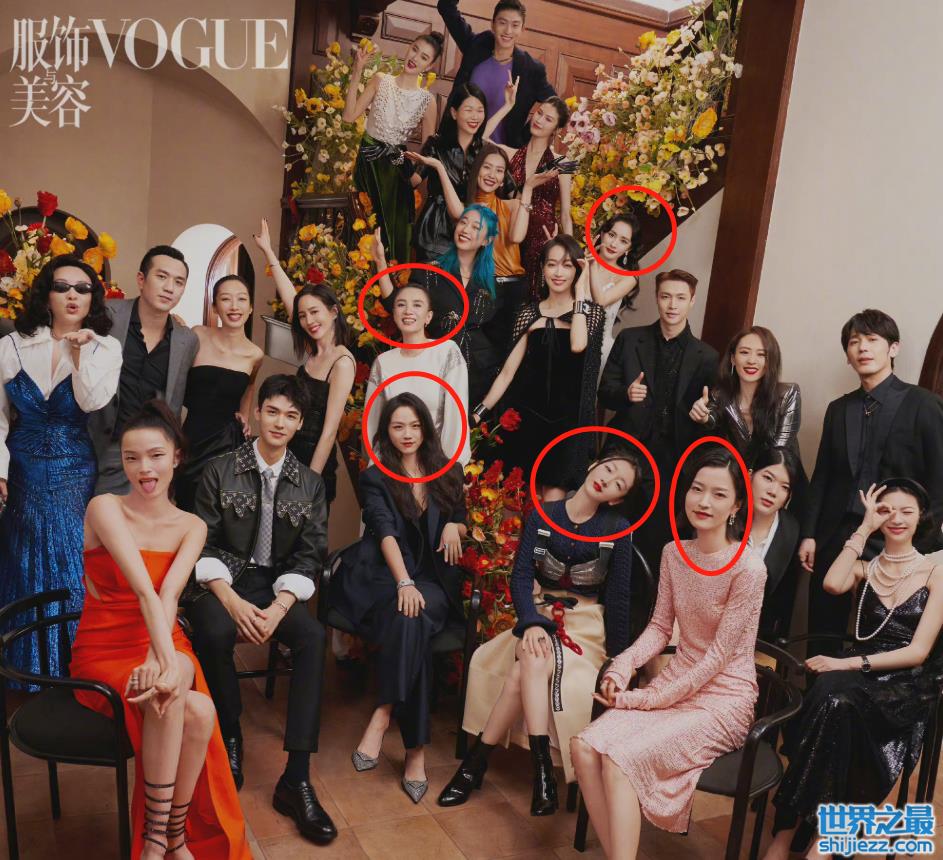 接着在比较显眼位置的是周冬雨,宋佳,杜鹃,宋茜,张钧甯。最令人惊讶的是身为85花也是当红一线女星的杨幂,竟然在大合照中站到了后排而且靠角落的位置,大半个身子还被宋茜挡住了。这个站位和存在感有点不符合杨幂在娱乐圈的名气和咖位吧?还是85花的头衔不管用了吗?