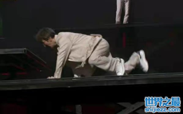 可以看到,张杰几乎是整个身体全部重摔在电梯里,根本没有丝毫准备,现场粉丝看到这一幕发出巨大尖叫声十分担心,舞台下的伴舞们不知情况还是在继续跳着。