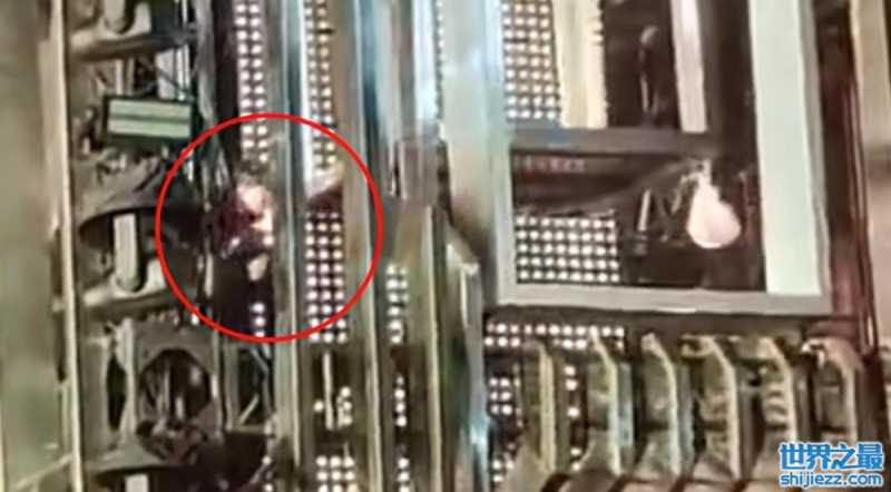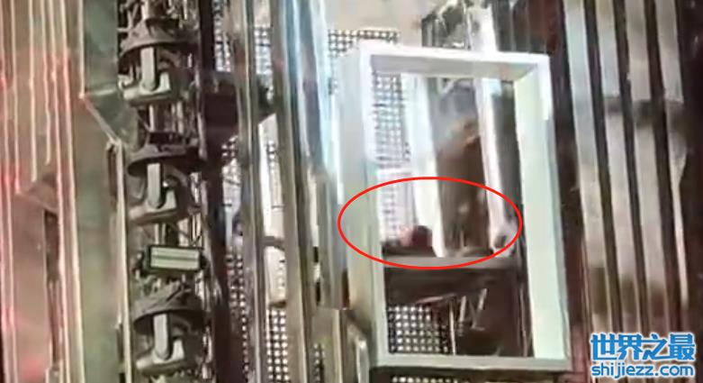 视频里,打扮华丽的张杰原本站在高空中的电梯里唱歌,没想到电梯不知因何突然下降,张杰重心不稳直接重重摔在了地上,放慢视频速度可见其惊心程度。