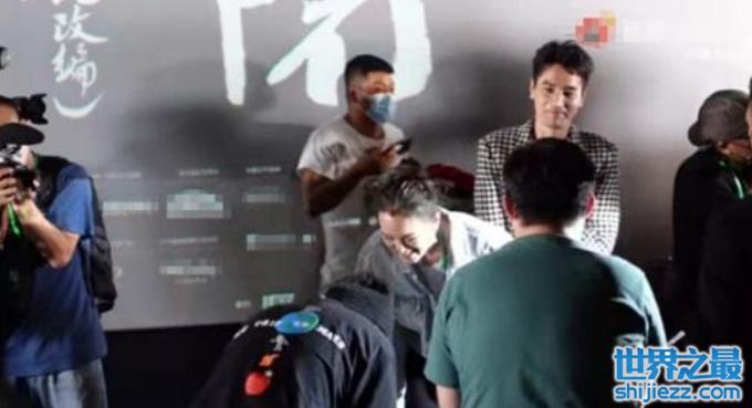 当天,巩俐身穿一袭黑色深V长裙,修身的裙身将巩俐完美的身材曲线勾勒出来,头发盘在脑后,虽是淡妆,却十分的优雅大气。从门口走出来时,因为裙子太长不太方便,巩俐便用手提着裙子下摆,走路姿势豪迈。巩俐身旁紧跟着的壮硕的工作人员也很是抢镜。