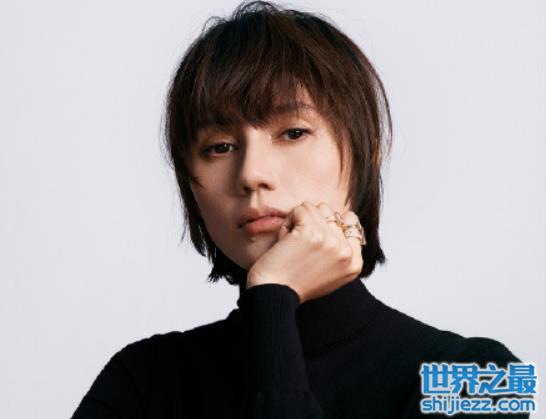 照片中,袁泉身穿一件黑色紧身上衣,一头短发干净利落,下巴上一颗标志性的痦子极具个人特色,目光坚定地直视前方。其身上也佩戴了多个戒指和项链,为造型增加了些许冷酷色彩。